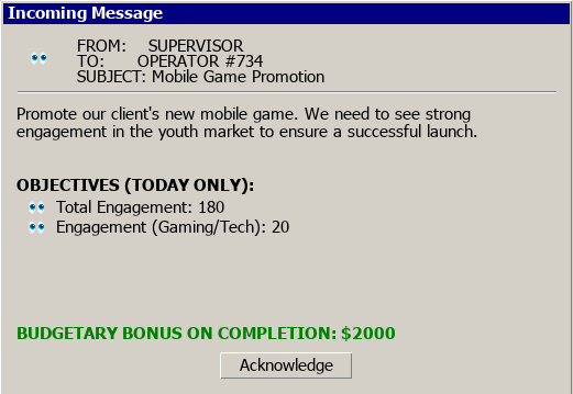 A roguelike management sim about social media manipulation and corporate "public relations".
